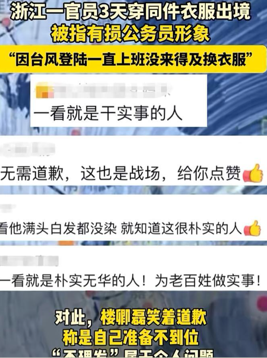 就因为连穿三天一身衣服,一位全身心扑在抗台一线的副厅长居然被网友举报“有损公务员形象”。