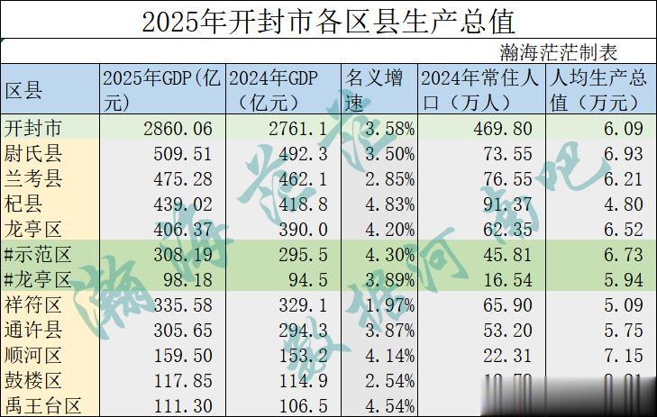 2025年河南省已经出了许昌市、平顶山市、安阳市、鹤壁市、商丘市、洛阳市、濮阳市、漯河市、南阳市、新乡市和郑州市这十一个地市分区县生产总值,今天我们来看下第十二个地市——开封市的分区县功能区生产总值情况。