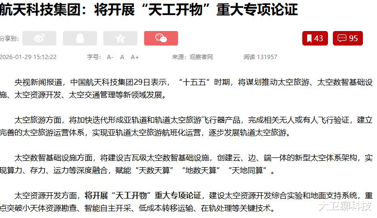 马斯克的百万卫星计划描绘了一个被通信网络包裹的地球,而“天工开物”指向的则是一个资源供给不再受地球限制的未来。这两种愿景代表了太空开发的不同维度,也预示着新一轮竞争已经展开。