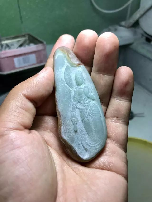 今天给大家分享的是一个打马坎的半山半水的料子,料子黄雾,肉质略微泛蓝。大家一起来欣赏雕刻过程,最后的成品效果如何?