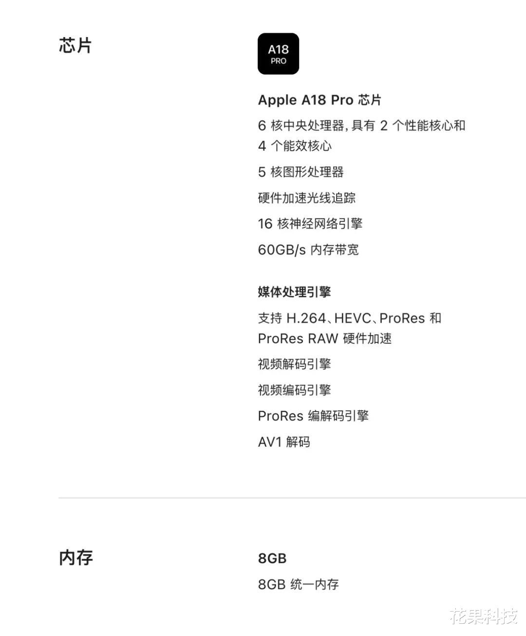 当然更有趣的是 MacBook Neo 的处理器,它并没有使用苹果 M 系列芯片,而是搭载了 A18 Pro 处理器。