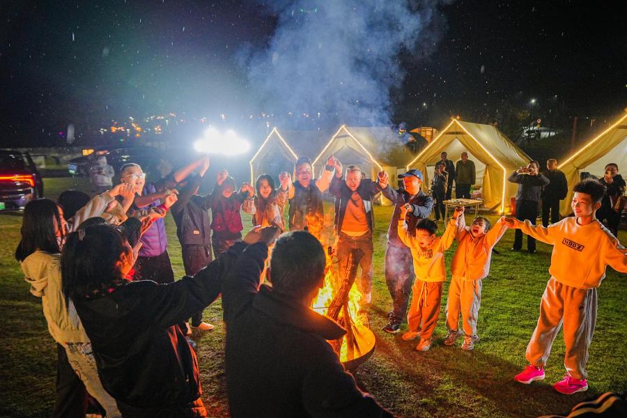 白天的热闹与体验之后,活动在夜晚切换至温情模式。一场独特的星空音乐会悄然上演,悠扬的旋律在营地飘扬。随后,炽热的篝火被点燃,跃动的火焰映照着每个人的笑脸。大家分享着彼此的故事,温暖与真诚在夜色中流淌。