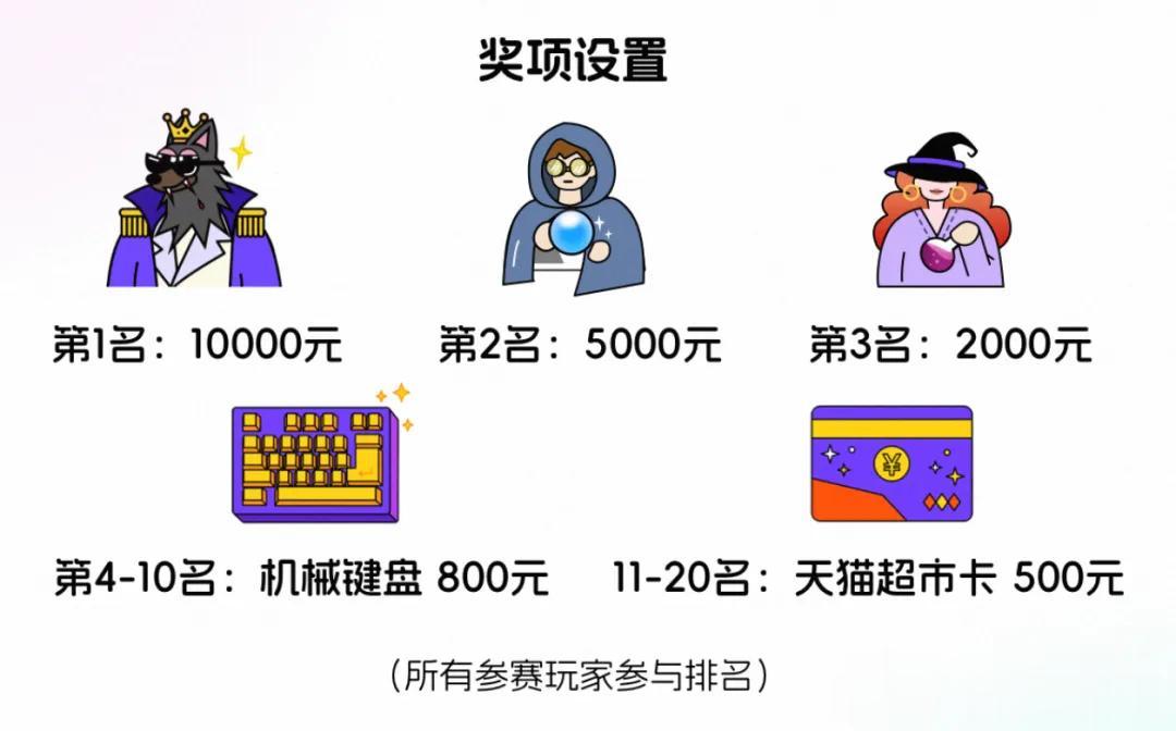 练习赛:2025年12月10日~2025年12月23日 正式赛:2025年12月24日~2025年12月31日(晚10点结束) 公示期:2026年1月3日~2026年1月10日 颁奖期:2026年1月11日~2026年1月20日不止如此,比赛还设置了丰厚的奖金激励。