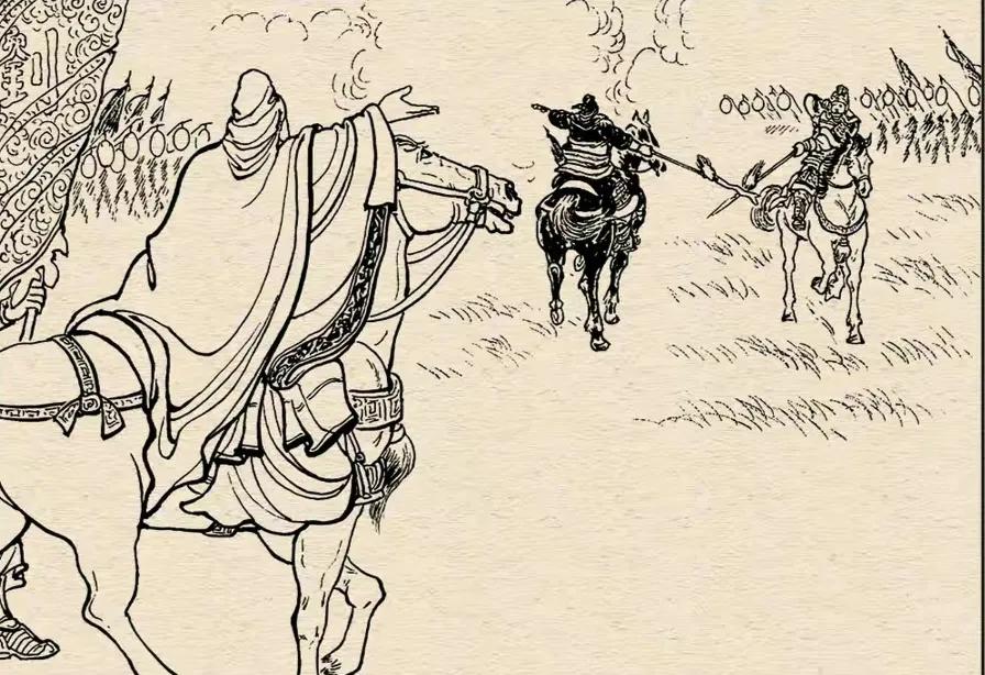 马超枪挑张飞蛇矛,二人又一次战马交错而过。他忽然冷笑一声,高声道:“刘备既在关上,为何不敢亲自出战?莫非是怯了本将不成?”