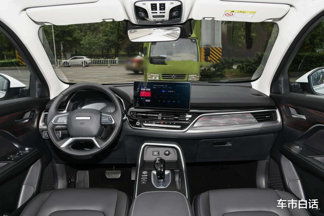 再看哈弗H6的内饰,在视觉上还是有一定的辨识度,多功能皮质方向盘,附带换挡功能,换挡机构还是传统的电子挡把,但驾驶者盲操还是比较方便。方向盘前方是7英寸全液晶仪表盘,搭配12.3英寸的中控屏,支持4G网络、主驾语音识别等功能,车机功能虽不多,但在智能化道路上,不至于掉队。