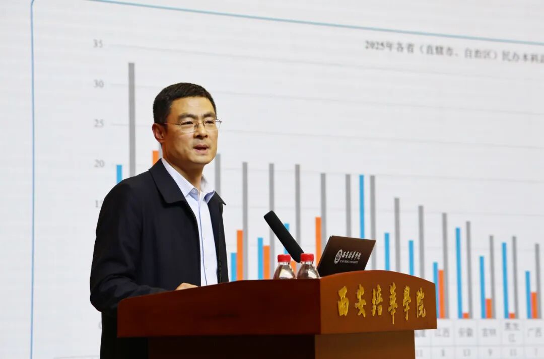 报告中,王一涛主任高度肯定西安培华学院办学成效,特别点赞学校在产教融合、学生成长成才等方面的突出成果,对学校连续三年公务员录用人数位居陕西高校前十的育人实绩给予高度评价。