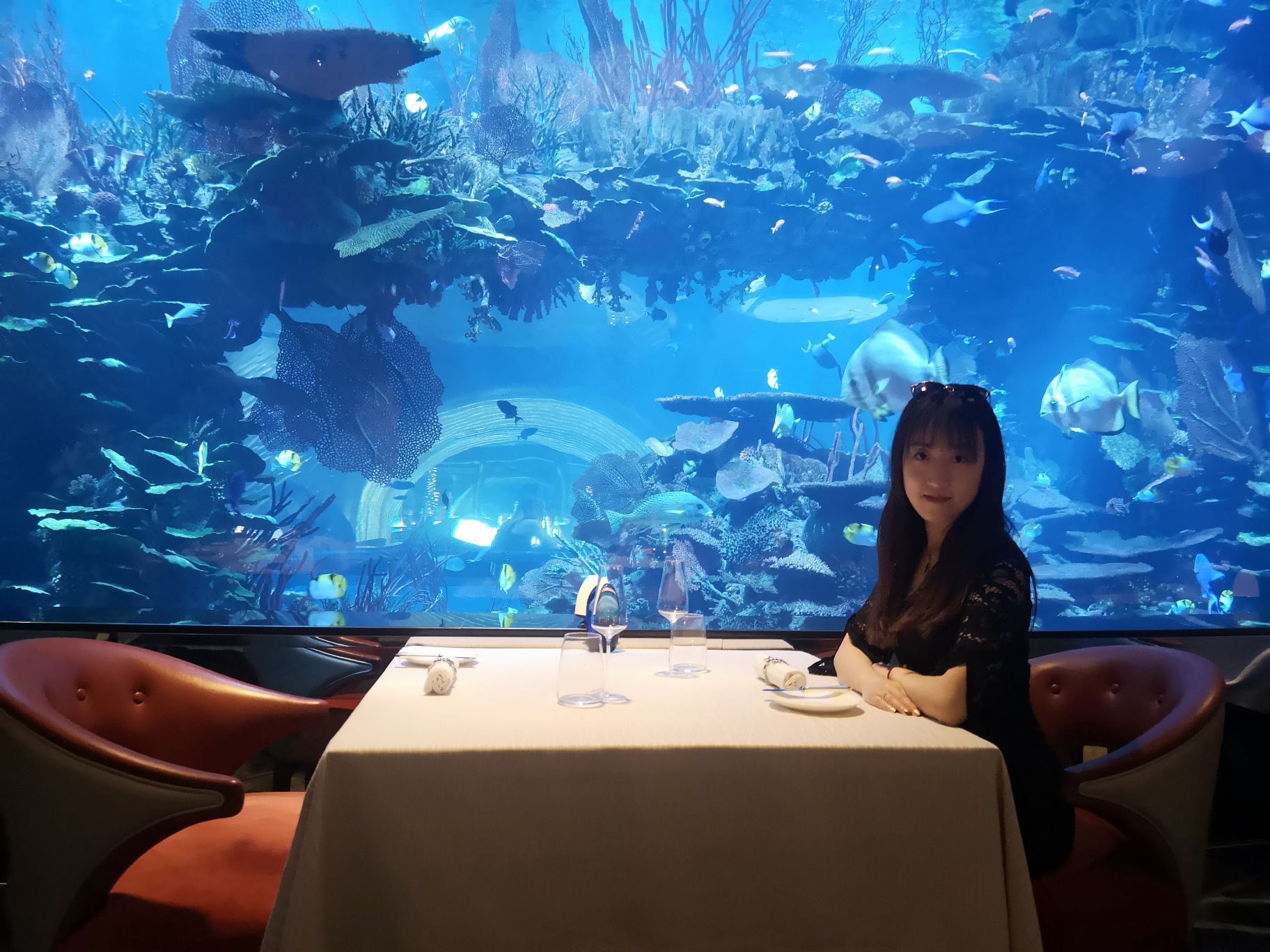 在帆船酒店海底餐厅用餐!虽然可能食物的味道没有你想象中那么完美!但是酒店还是很值得参观一下!处处彰显