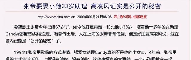 信息来源:四川新闻报——张帝要娶小他33岁助理 高凌风证实是公开的秘密