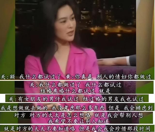 1989年,关之琳在香港访谈节目中公开了自己的情史。在节目中,关之琳言论大胆。而这期节目播出后,收视率创下了新高。