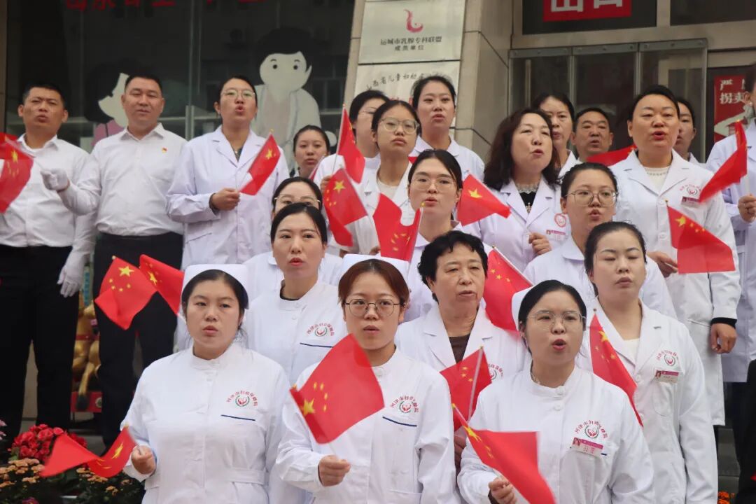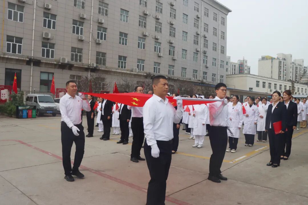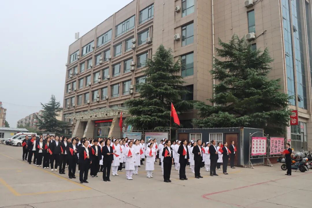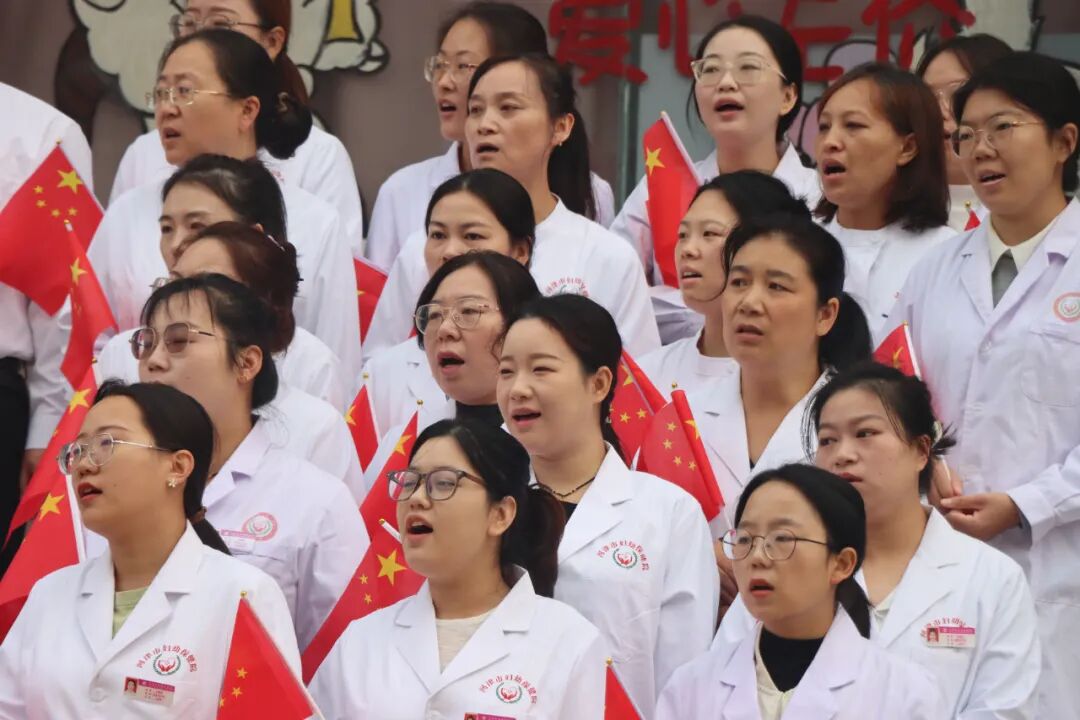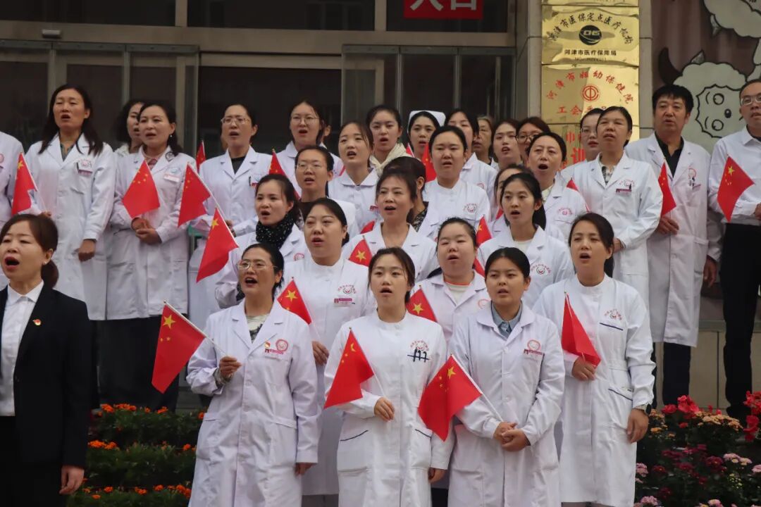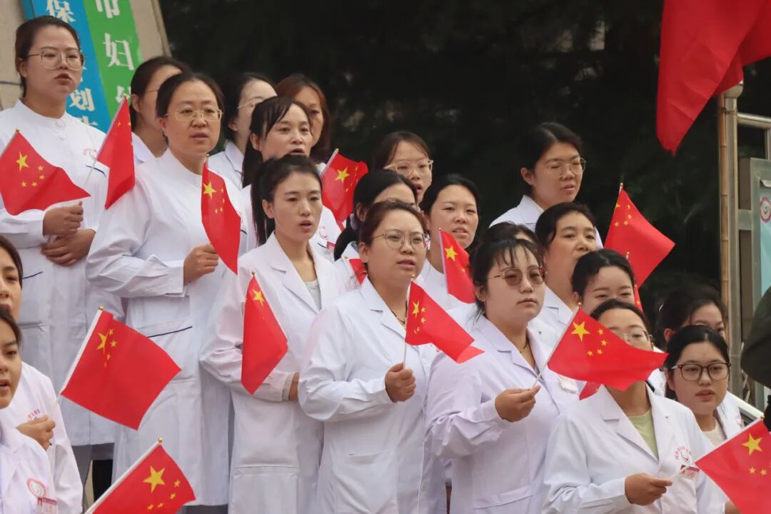 仪式现场庄严肃穆,鲜艳的五星红旗在晨光中静静矗立。随着雄壮激昂的《义勇军进行曲》奏响,护旗手迈着铿锵有力的步伐,昂首阔步走向旗杆,将国旗稳稳固定。全院职工肃立注目,目光紧紧追随缓缓升起的五星红旗,心中涌动着对祖国的无限崇敬与热爱。飘扬的国旗与洁白的医护制服交相辉映,构成了妇幼院清晨最庄严、最动人的画面。