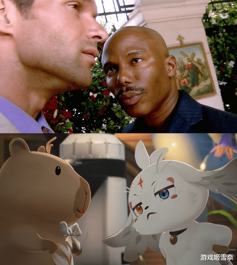 所以鸣潮二创最常看到的就是各种修罗场小怨妇,所以出现守岸人和椿真跑过来拷打新后宫小妹的镜头我还真没觉得有什么不合适的地方,日常啦,洒洒水啦,漂子只要乐呵呵装看不懂就行了,后宫们考虑的就多了,所以更让我没绷住的是吉祥物们也差点打起来,给阿布嘴都气歪来!