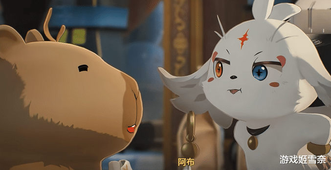 嗯,水豚也是黄的也算黄毛。无论是走感情线还是单纯保命,阿布这一手棋下的都非常漂亮,就在阿布马上计划通的时候,千算万算没有算到自己就跟漂子断联这么一会,身边就有新的宠物了,给阿布干宕机了,接下来该说什么?明明是我先来的!
