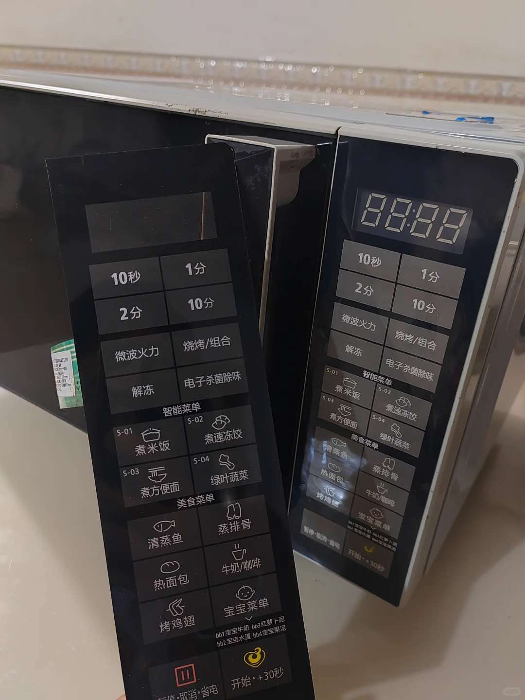 建议,为了能够用的更长久一些,更方便家里的老人和小孩子使用,一定要买那种面板上只有两个旋钮的老款微波炉。