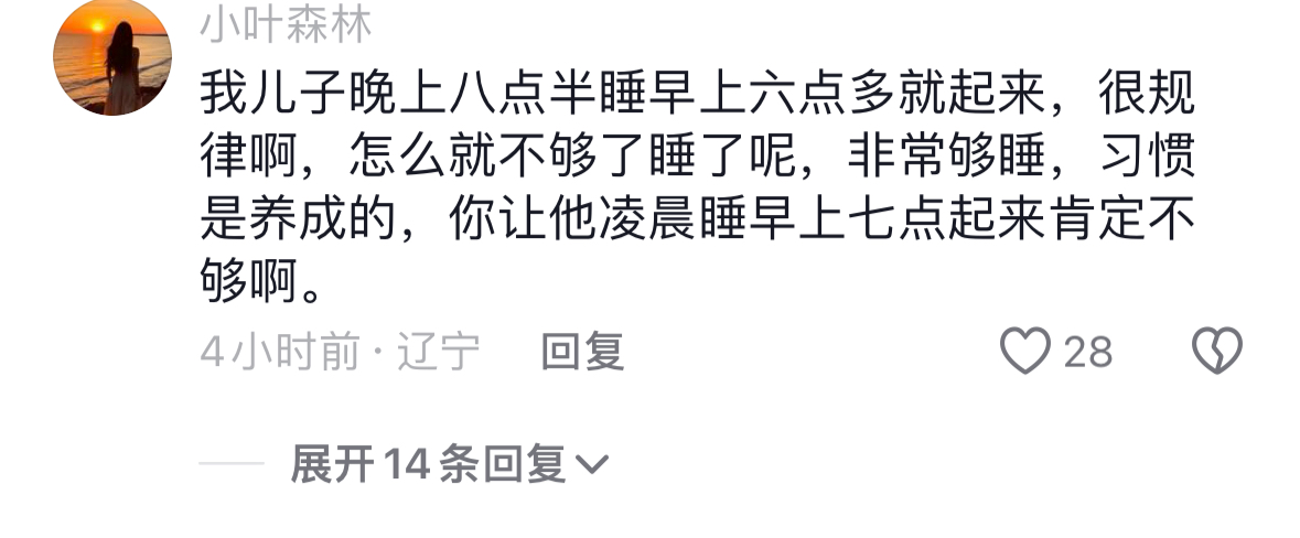 到底是自己不想起,还是孩子不想起?对于一个小学生来说,到底是睡眠重要还是早课重要?有一句话是这么说的“没有规矩不成方圆”学校上下学的时间都是科学论证的,更不会因为一个孩子调整。还不如让孩子早睡早起,别把自己晚睡的习惯带给孩子。