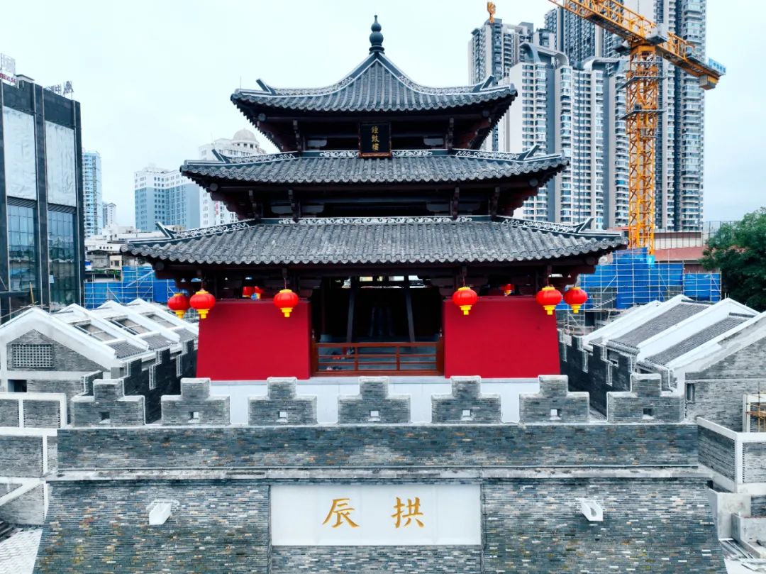 钟鼓楼于2022年启动建设,2023年年底主体结构基本建成、2024年2月8日举行亮灯仪式……