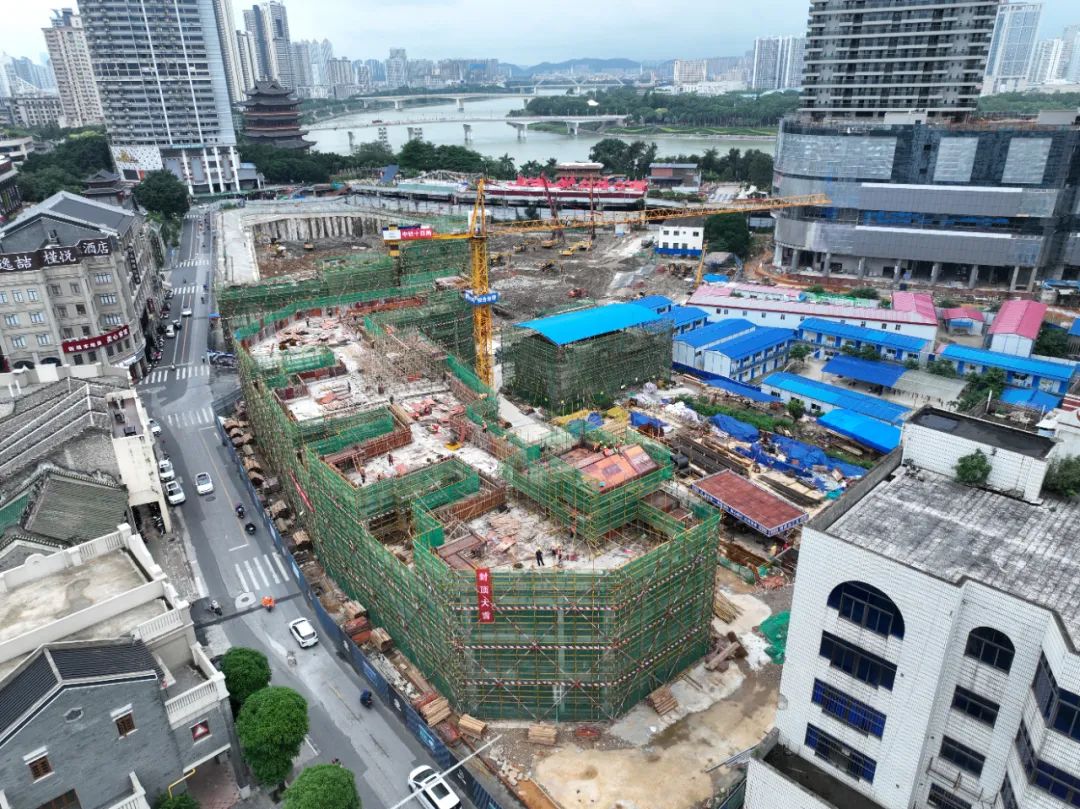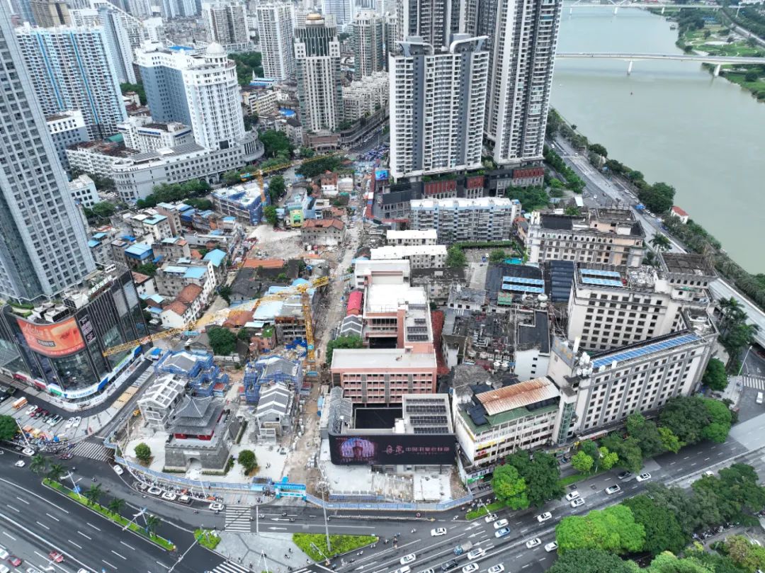 ▲水街项目部分建筑封顶中山路历史文化街区、水街将于今年年底竣工。