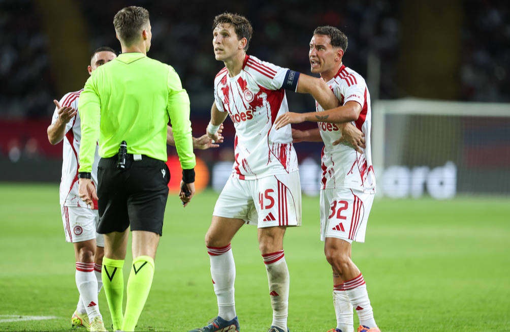 奥林匹亚科斯:88-佐拉基斯、20-科斯蒂尼亚、5-皮罗拉、45-雷索斯、3-奥尔特加(第53分钟70-布鲁诺)、32-赫泽、14-丹尼尔-加西亚、10-马丁斯(第46分钟96-穆扎基蒂斯)、22-奇奎尼奥(第31分钟8-纳西门托)、56-波登斯(第78分钟11-亚列姆丘克)、9-卡埃比(第78分钟99-塔雷米)