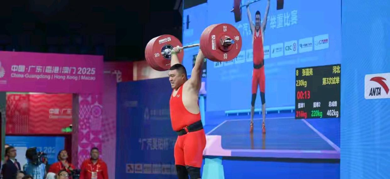 比赛从抓举环节便埋下了紧张的伏笔。河北队的张喜亮展现出了强大的统治力,他沉稳地走上举重台,深呼吸,下蹲,握杠。随着一声低吼,182公斤的杠铃被他稳稳举过头顶,这一成绩不仅为他确立了领先地位,也为这场决赛定下了高强度的基调。紧随其后的是贵州队的王大贺与山东队的刘世燊,他们分别举起了178公斤和176公斤,构成了第一集团。然而,所有人的目光都无法完全离开一个身影——三十四岁的北京老将艾雨南。作为该项目的全运会三冠王,他以175公斤的成绩暂列第五,这个看似不起眼的开局,更像是一位经验丰富的猎手在耐心潜伏,等待挺举环节的决战。