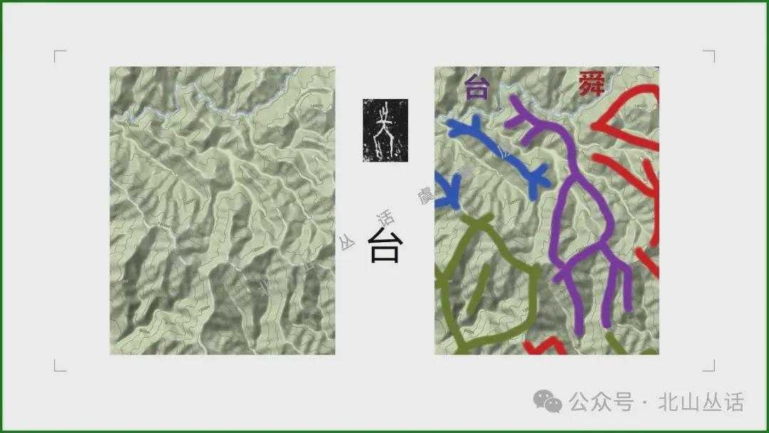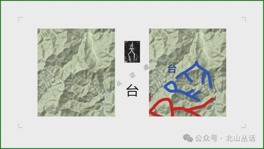 台,本义是四方高而平的建筑物。台的字根为之-宀。之的本义是前往;宀(mián)的本义是屋顶、房屋。台的字形寓意是可以驻足的平整屋顶。台的最初用途主要是祭祀。