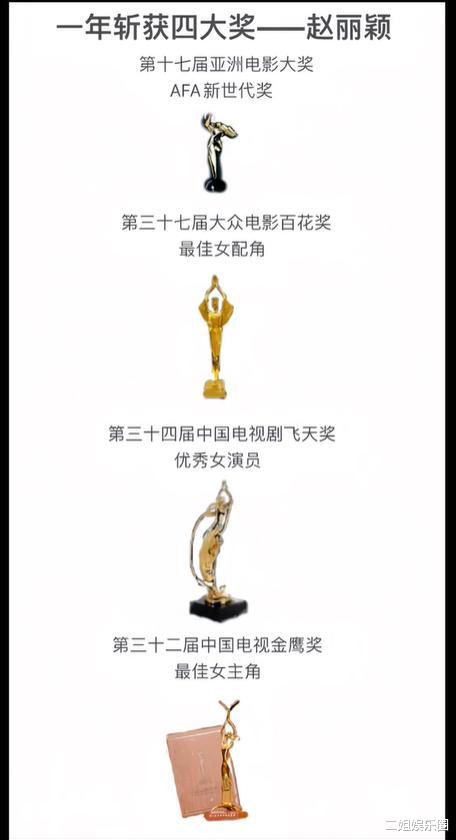 与三连扑形成鲜明对比的是赵丽颖的连获四奖。