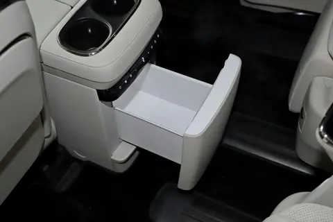 空间体验是这款车的强项,我们找了位身高185cm的朋友实测。前排座椅调至最低后,他的头部还有一拳两指的余量,腿部离中控台两拳多,即使他这种大长腿,也不会觉得膝盖顶到前面。方向盘可以上下前后调节,找到舒服的驾驶姿势不难。中控台下方的储物槽很深,能放下他的13寸笔记本电脑,旁边的无线充电板是倾斜的,手机放上去不会滑下来,50W的功率充得也快,开会前临时补电很方便。 第二排的零重力座椅是真的“能让人陷进去”。Nappa真皮的表面有细微的毛孔,夏天坐不闷,冬天坐不冰。朋友把座椅调至173°靠背角度,腿托完全展开,整个人像躺在按摩椅上,他185cm的身高,膝盖离前排座椅还有三拳距离,脚尖能自然着地,不会有“吊脚”的难受感。座椅的按摩功能有7种模式,他最喜欢“腰部重点”模式,说是跑长途时按10分钟,腰不酸了。值得一提的是,座椅的侧翼可以电动调节,胖一点的人可以调宽,瘦一点的人可以调窄,包裹性总能恰到好处。 第三排并没有成为“鸡肋”。朋友坐进去时,我还担心他会顶到头,结果他的头部离车顶有一拳,腿部离第二排座椅有一拳半,虽然不如第二排宽敞,但比他之前坐过的某款合资MPV强多了——那款车他坐第三排得低着头,膝盖还顶到前面。第三排的座椅靠背可以调节角度,调至最斜时,他说“有点像家里的沙发”,长途坐两三个小时没问题。 行李舱在7人满员时,能放下两个28寸行李箱和三个登机箱,我们周末出游带了婴儿车、露营帐篷、两个大背包,把第三排座椅放倒一半就全装下了。比较贴心的是,行李舱的地板是纯平的,没有台阶,搬重物时不用费力抬。