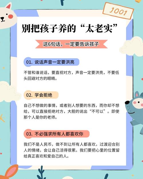 首先,要教孩子有边界心眼子,学会拒绝不委屈自己。很多孩子从小被教育“要懂事、要谦让”,别人抢玩具、借东西不还,甚至故意欺负自己,都不敢说不,只会默默忍受。父母一定要告诉孩子:你的东西你做主,不想分享完全可以拒绝;别人触碰你的身体、让你感到不舒服,立刻大声制止,不用顾及任何人的面子。善良要有尺,忍让要有度,无底线的退让,只会让别人得寸进尺。