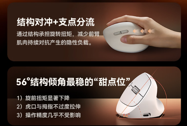 很多人一开始选人体工学鼠标,都会卡在同一个问题:看着都差不多,到底差在哪?值不值得换?说实话,现在长时间办公、打游戏的人越来越多,效率可以慢一点,但手腕不舒服这件事,很难长期忍。一款真正设计到位的人体工学鼠标,确实能把手腕压力分散掉,用久了差别是能感知到的。但前提只有一个——你选对了。选错的话,不仅没有缓解,反而可能因为角度不合适、支撑不到位,让手指和手腕更累,甚至用一会儿就想换回普通鼠标。