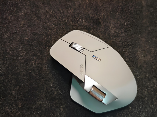 雷柏 MT760 的最大卖点在于尺寸和握持体验,机身尺寸125×81×47mm,专为手长大于11.5 cm的大手用户设计,握持时掌心和手指都能完全贴合,避免手指悬空和手腕挤压,长期使用更舒适,尤其适合长时间办公或游戏场景。加上类肤感软胶指托和磨砂硬胶按键,触感稳固且不易打滑,手感扎实。虽然握持舒适度高,但对于手小的人来说可能显得过大,手指伸展不自然,需要一定适应时间。此外,整体造型偏长,对桌面空间有限的用户可能稍显占位。