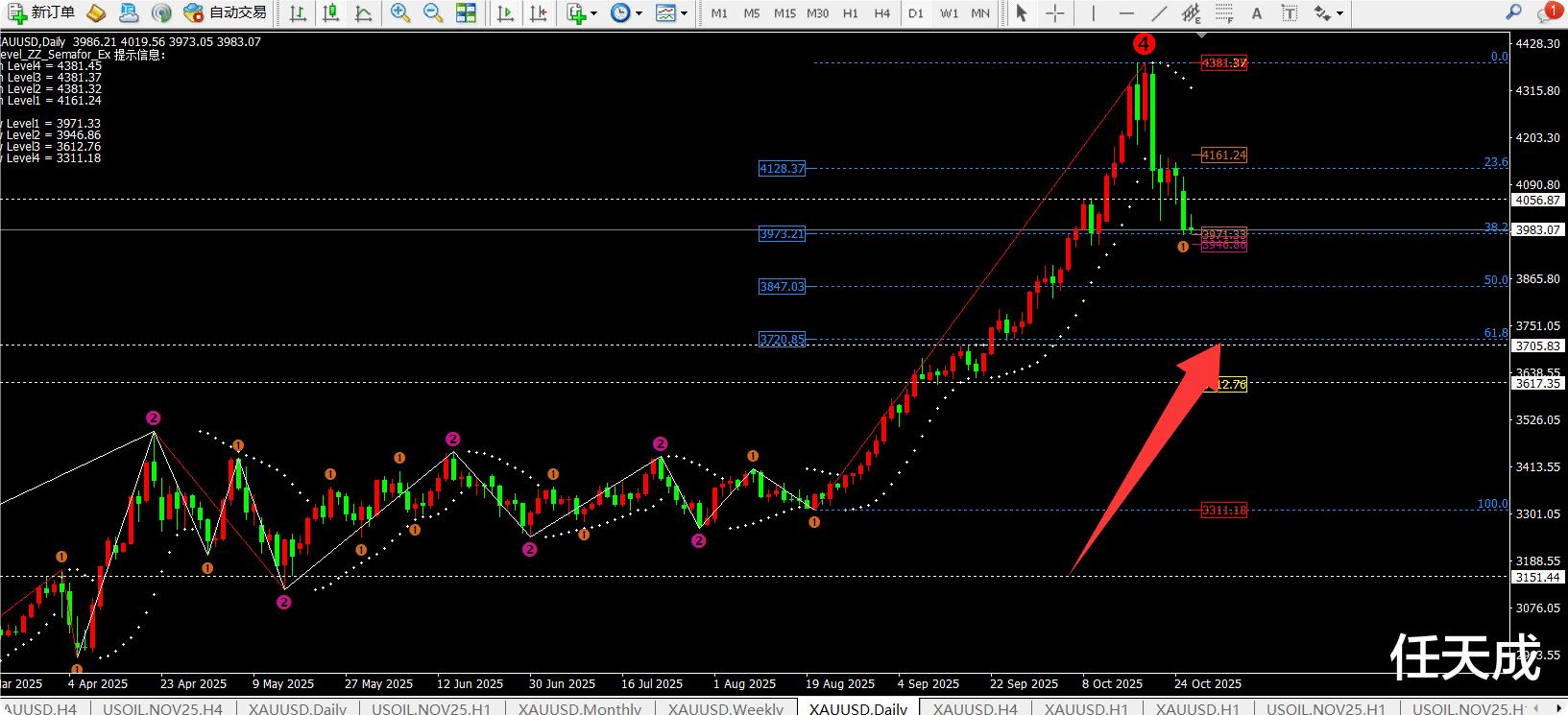 目前3970-72是当前支撑点,而压制点位于4020以及4050一线,其次是4060-4085一线。而天成昨日给出的3970附近多也是完美收获利润,只是可惜我们布局空单没机会上场。