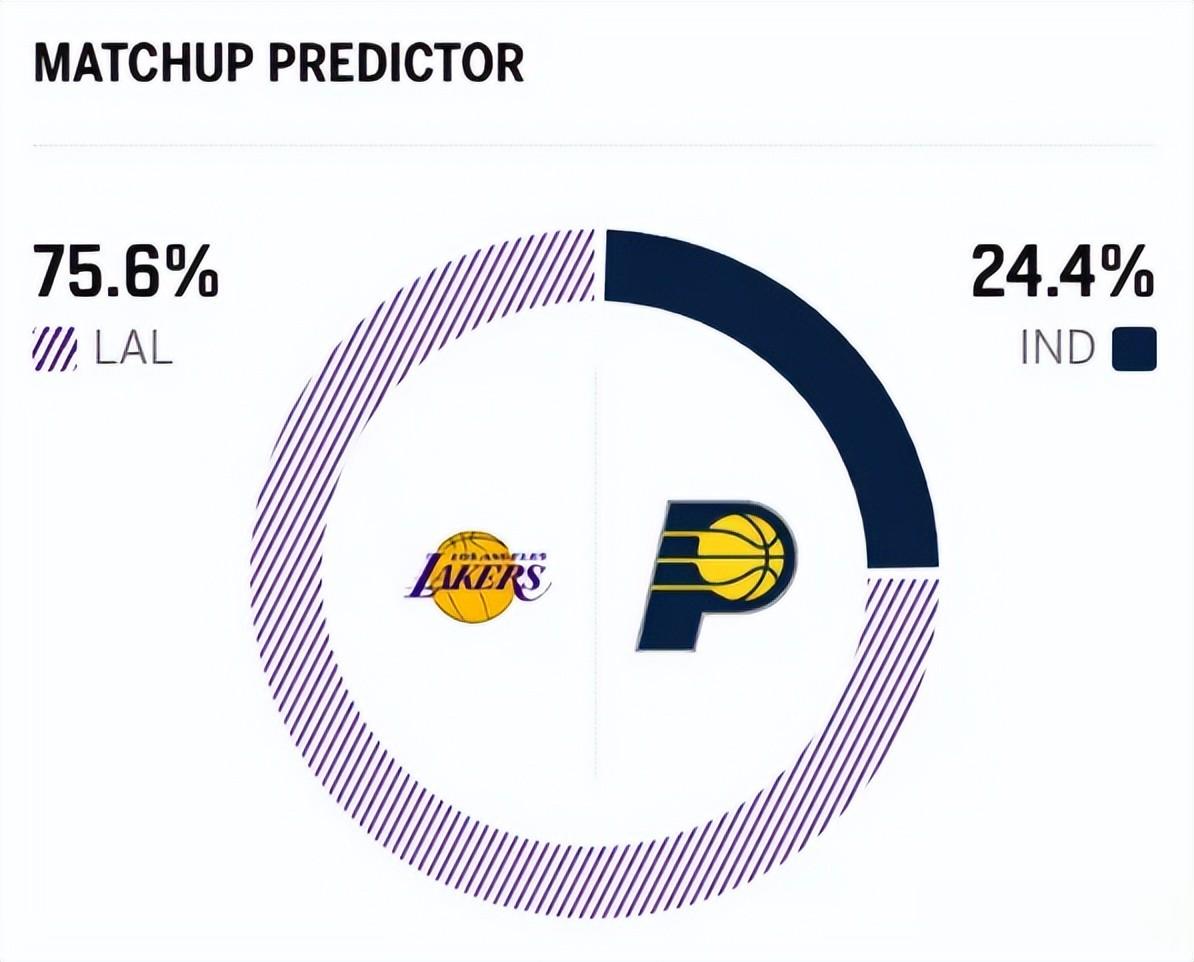 赛前,美媒ESPN对本场比赛进行了胜率预测,湖人队胜率高达75.6% ,步行者胜率则仅有24.4% 。
