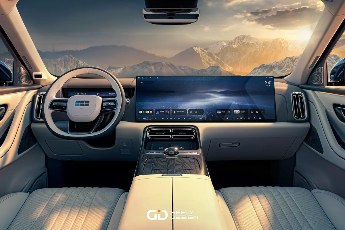 此次吉利银河M9搭载银河Flyme Auto 2 AI座舱,集成15.4/30英寸中控屏,12.66英寸仪表盘,搭配AR-HUD为驾驶者提供更清晰直观的信息,开车更专注、更安全,此外,HUD成像面积为32英寸。