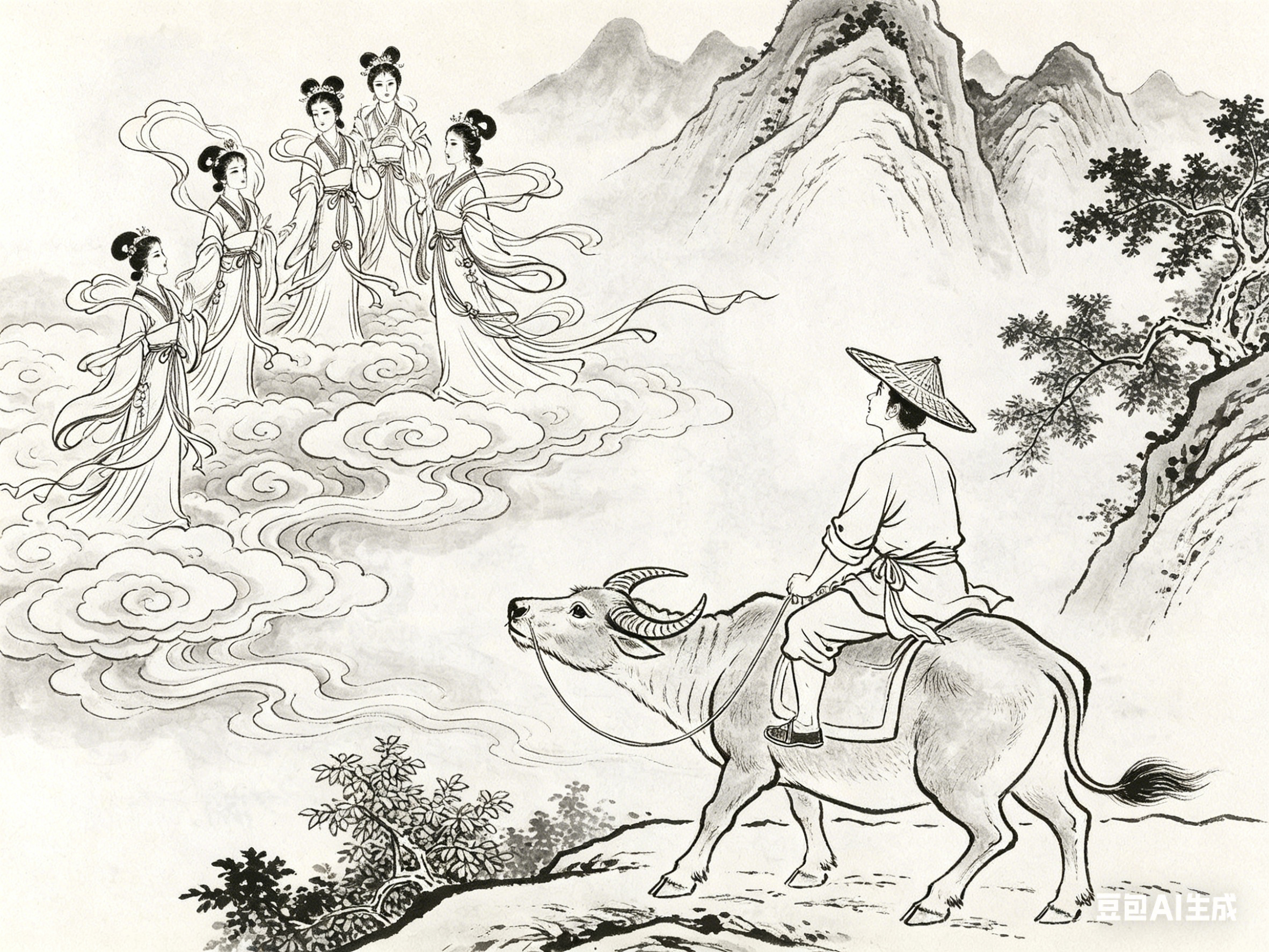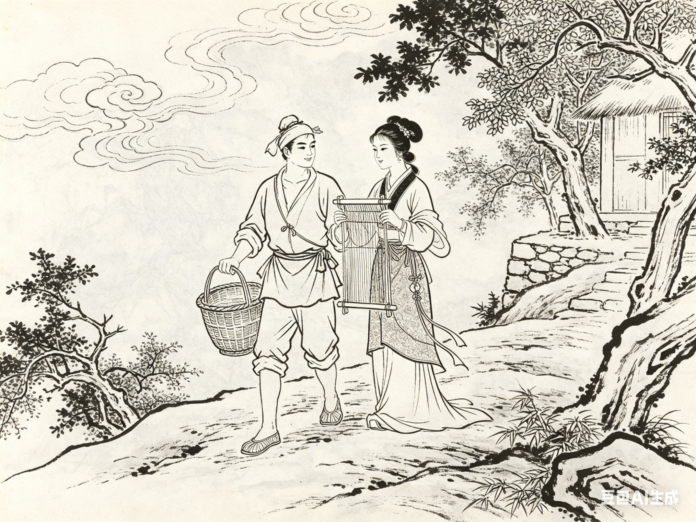 反抗压迫、追求自由的精神,在传说中有所体现。织女为爱情不顾天庭规矩,私自下凡与凡人成亲反抗天庭的压迫;牛郎为寻妻子不畏艰难,挑儿女追赶织女,展现了对自由爱情幸福生活的追求。这种反抗精神,贴合了人民反抗不公追求自由的心声,让传说更具感染力。