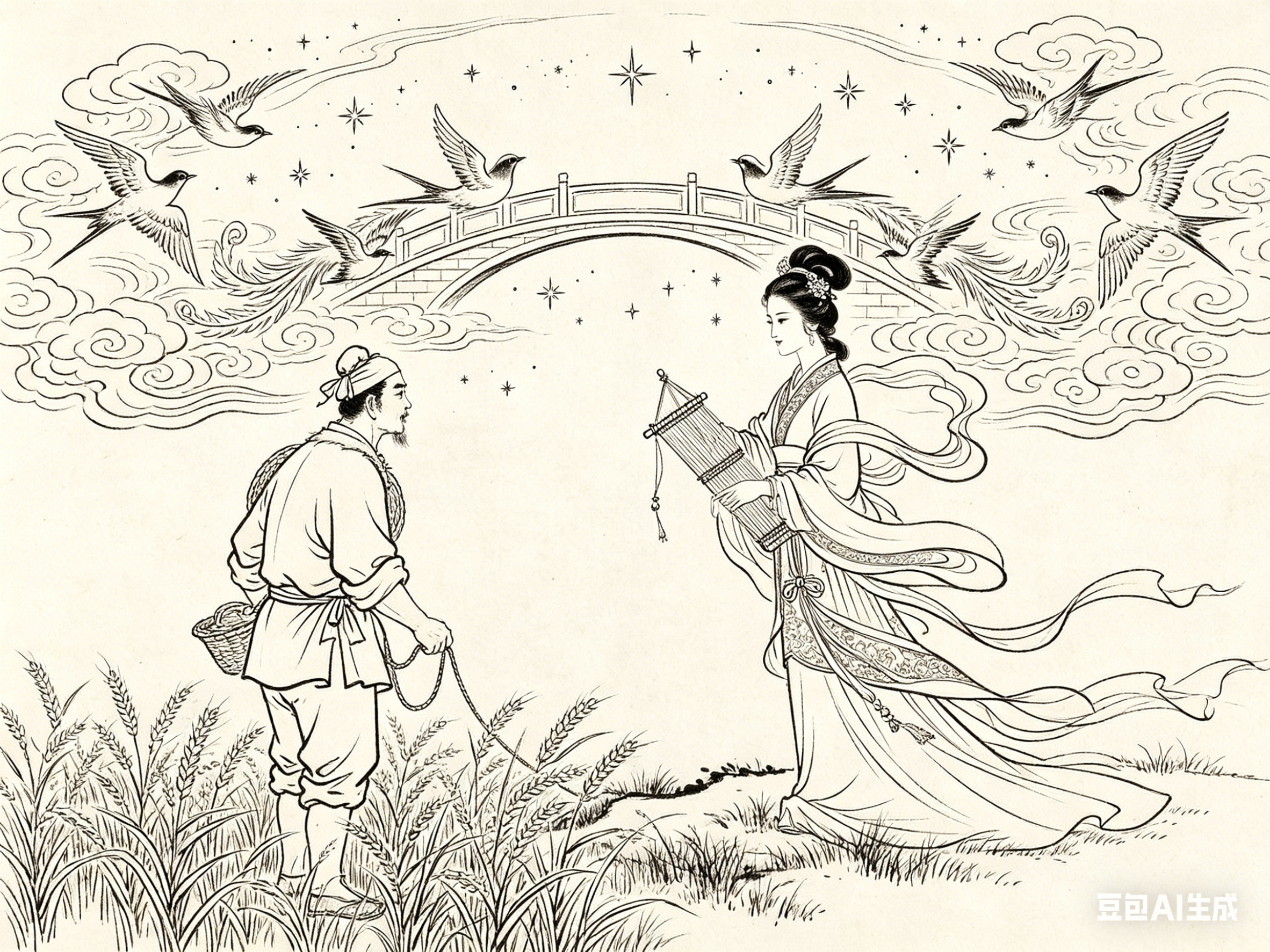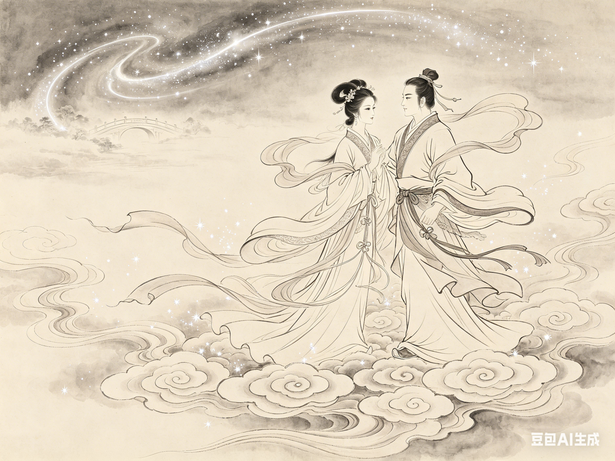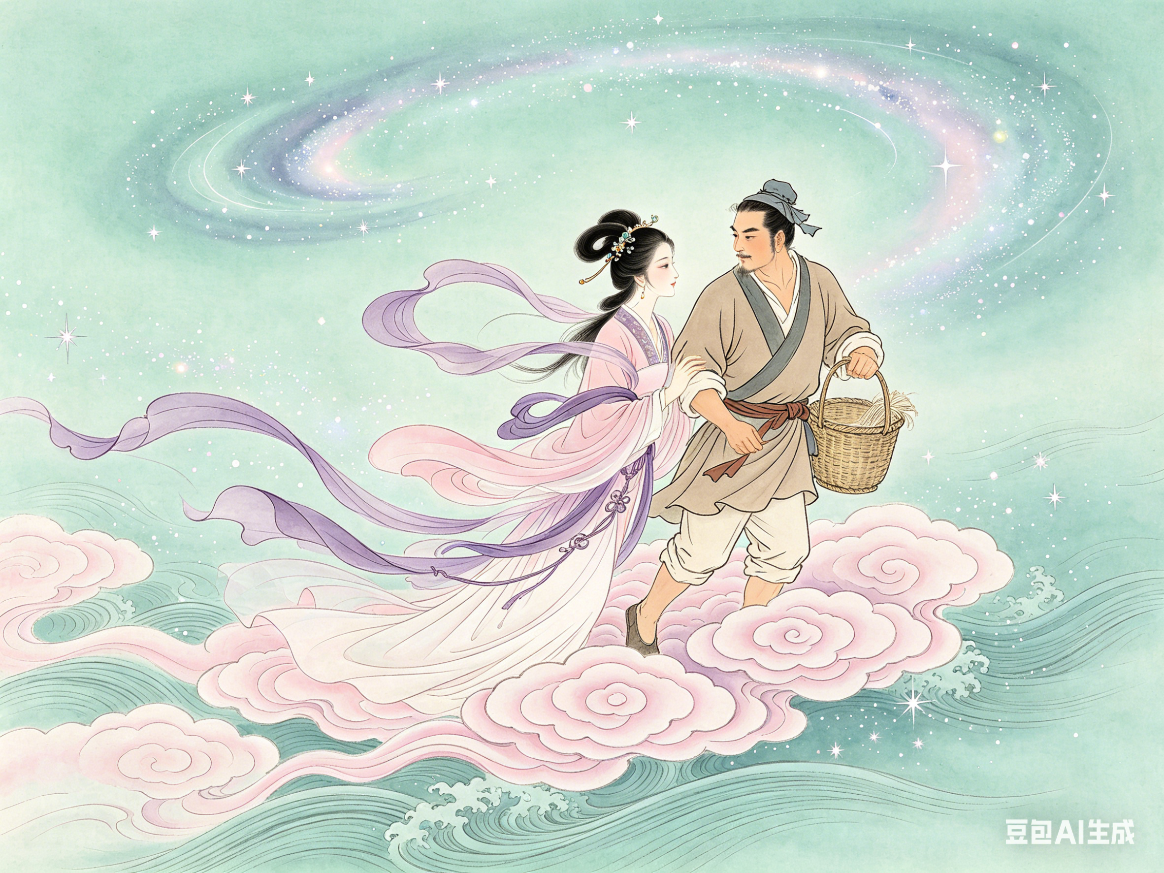 坚贞不渝的爱情观是传说最核心的精神内核。牛郎与织女,一个是凡间朴实的农夫,一个是天界尊贵的仙女,两人身份悬殊却冲破仙凡界限结为夫妻,即便被银河分隔,也始终坚守对彼此的爱意从未放弃。这种“愿得一人心,白首不相离”的爱情,打动了代代国人,成为民族追求美好爱情的精神象征。