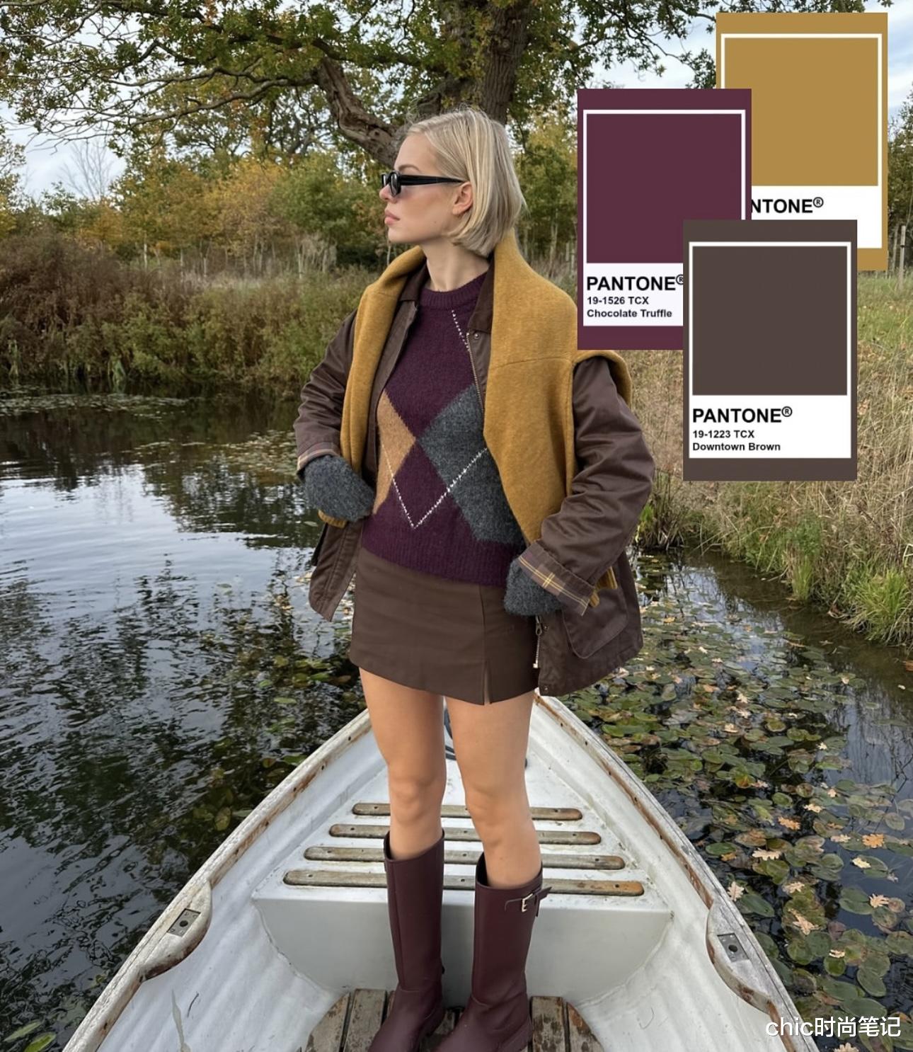 棕色、姜黄色、波尔多红色是秋冬色系的“老演员”了,也很适合欧美国家的圣诞节穿搭,既有浓烈的圣诞氛围感,又是符合秋冬的大地色系。