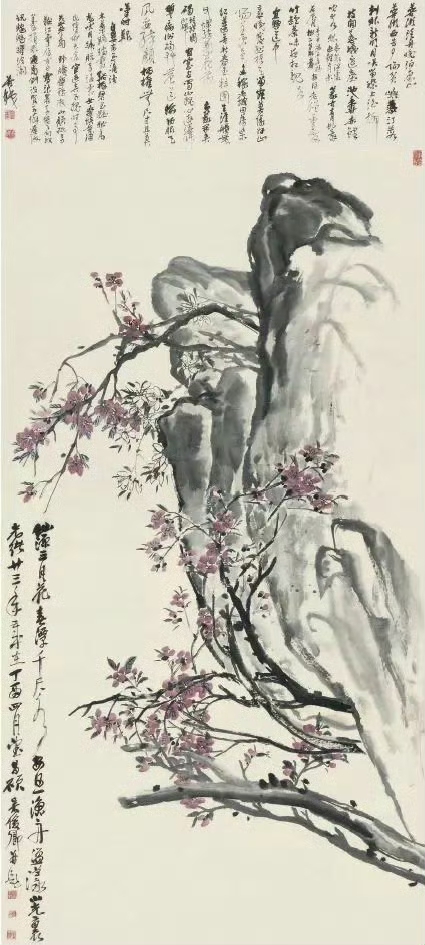他说"生平得力之处在以书作画",其实是在说:艺术的根是相通的。练书法时磨的不是笔,是心性;画画时用的不是墨,是修养。当书法的"力"和绘画的"美"融在一起,花鸟就不再是简单的"好看",而是有了人格的重量——像他笔下的老梅,历经风霜,却总能在枝头爆出新蕊,带着股不服输的劲。