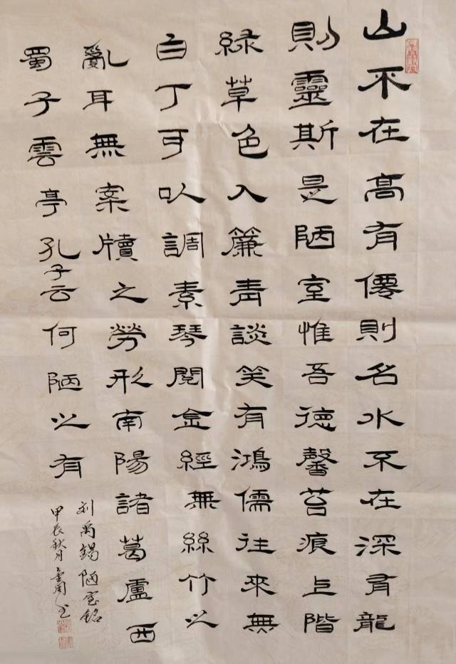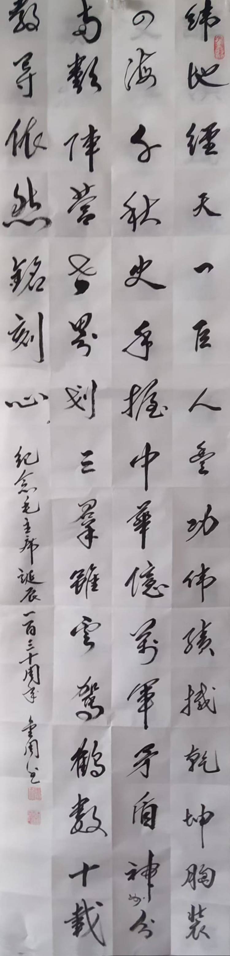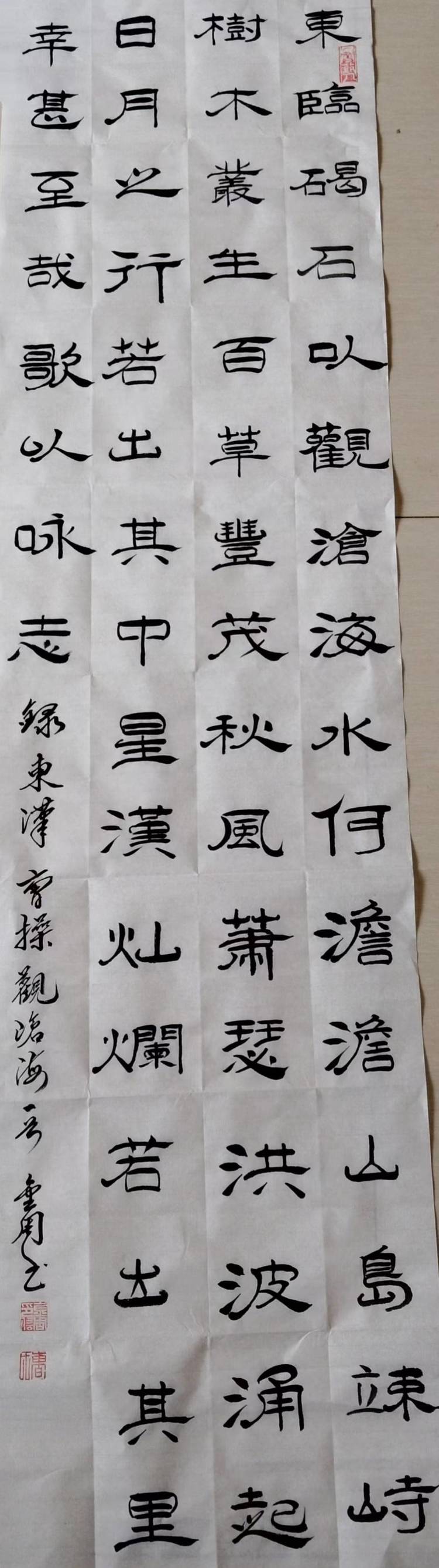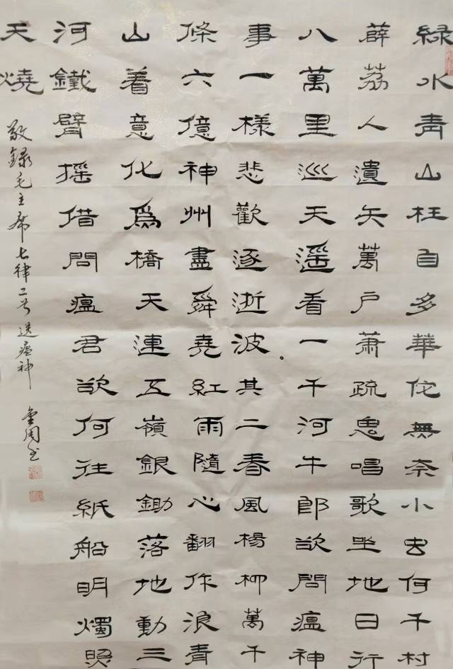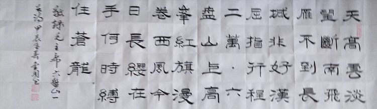 曹金周,男生于一九五四年三月,河北省沧州市海兴县人,自幼爱好书画,教过书,当过兵,退休后加入河北省毛体书法协会,多次参加国家省书展,并获奖。晚年又临习了《曹全碑》,爱上了隶书。