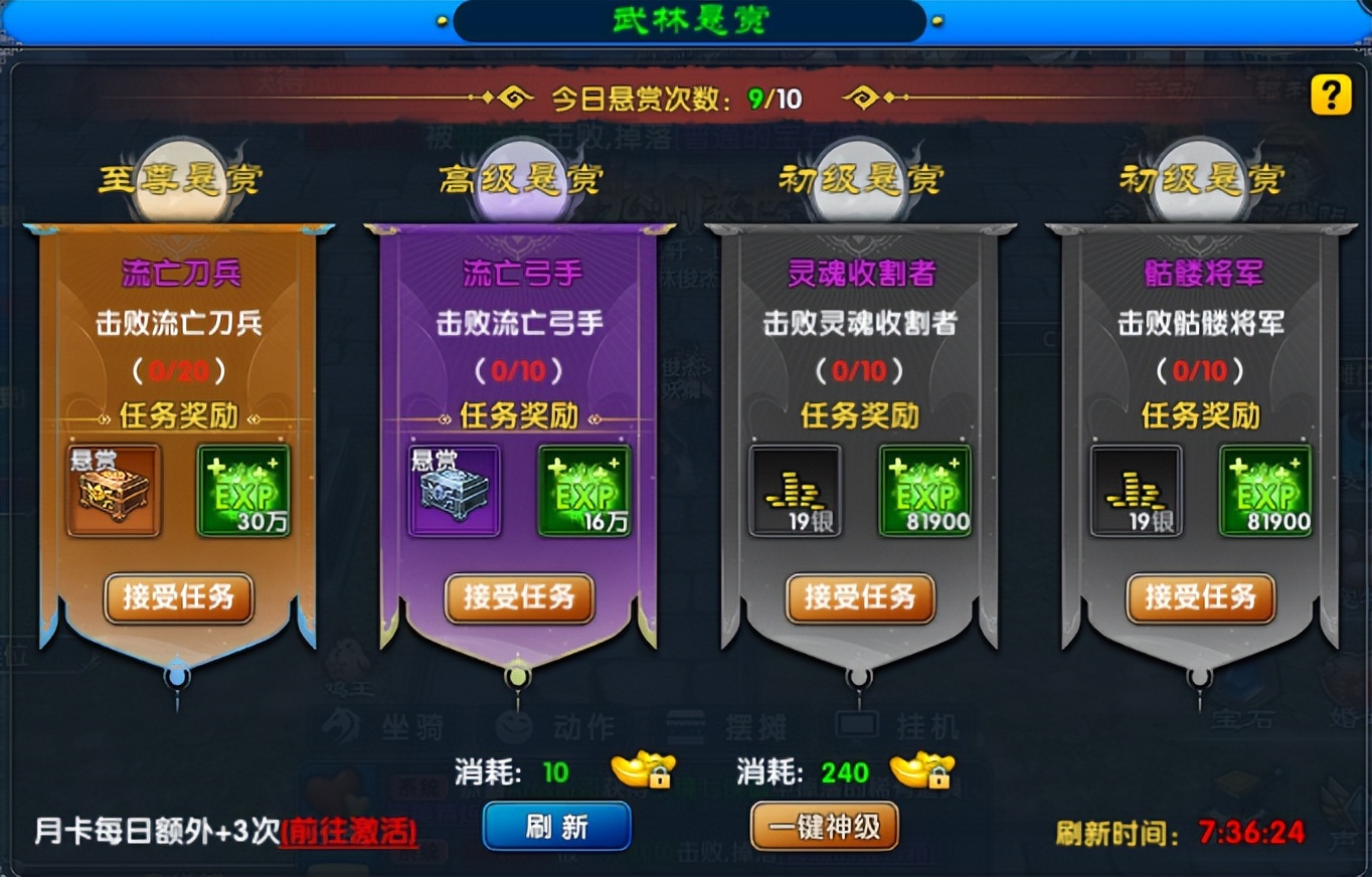 开服前三天组队+经验符+侠客令冲级,优先做金色悬赏,21点帮派打坐稳拿经验;绑定元宝优先换精炼石、保底符或刷新至尊悬赏,不浪费在低性价比道具上。