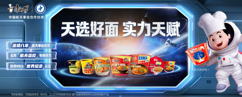 很多人不知道,康师傅是全国第一个把航天技术用到方便面里的企业。源自航天的专利温控技术被应用到面饼制作中,让面条更筋道、更爽滑。FD冻干技术与航天员在太空吃的冻干食品是同一个原理,蔬菜包里的葱花、枸杞、鸡蛋碎,热水一泡就能还原新鲜的颜色和口感。