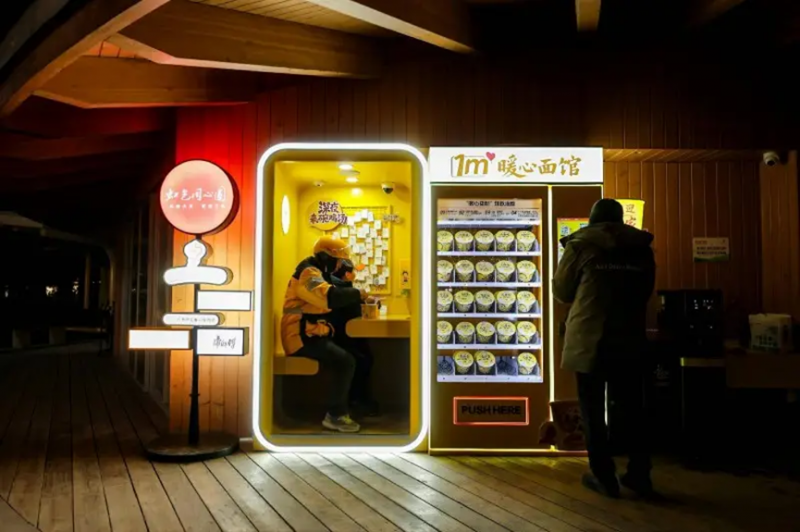 在康师傅“1㎡暖心面馆”持续运营的城市里,深夜的街头依然亮着那盏灯。这个不足一平方米的温馨空间,专门为环卫工人、外卖骑手、网约车司机等深夜奔波的劳动者守候。热水免费,泡面免费,想坐多久坐多久。