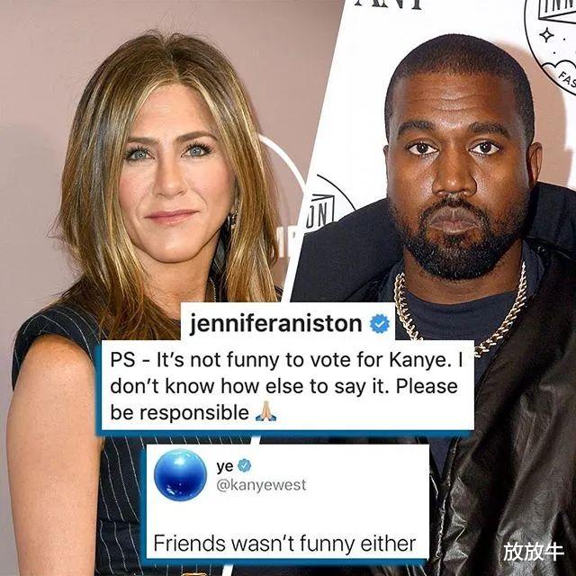 Kanye最近又在跟《老友记》的安妮斯顿打起来嘴炮,安妮斯顿称把总统投票投给Kanye一点都不好笑,而Kanye的回击也相当有力,直接称《老友记》并不好笑。