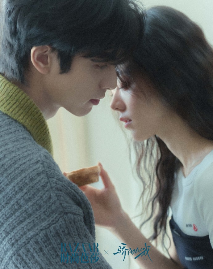 赵今麦与宋威龙近距离面对面,眼神深情地对视,彼此的目光几乎交织在一起。这一刻的凝视,仿佛时间也静止了。赵今麦手中捧着一块甜点,准备喂给宋威龙,而宋威龙则专注地看着她,眼神中充满了宠溺与关怀。在这一瞬间,所有的甜蜜和爱情似乎都在他们的眼神中找到了最美的表达。