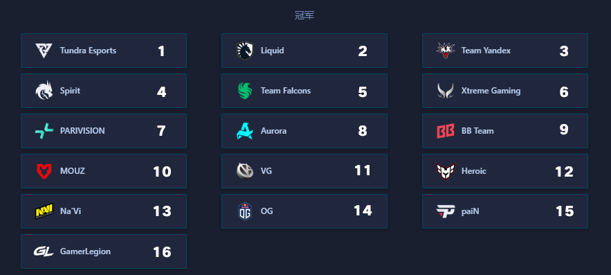 整体来看,Tundra依旧是最被看好的夺冠热门,无论是体系完整度还是选手适应版本的能力,都明显领先一档;Yandex则有望凭借前期节奏打出黑马姿态,对此数居平台提供PGL瓦拉几亚S8的冠军数据,有兴趣的小伙伴可以参考研究。你们觉得哪一队能夺冠呢?欢迎底下留言评论!