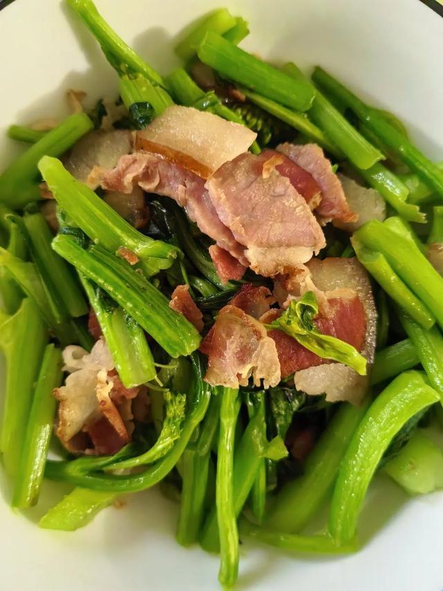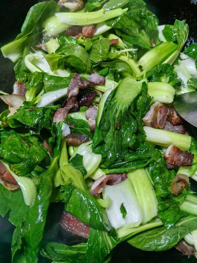 肥而不腻、瘦而不柴的腊肉在翻炒的过程中香味扑鼻而来,独特的咸香,让人无法抗拒。