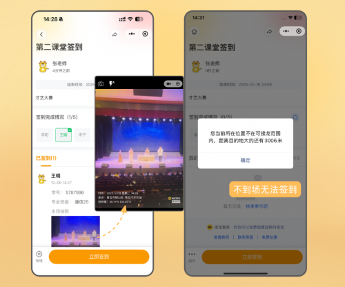 校级讲座、第二课堂等严格场景:开启水印拍照+定位签到
