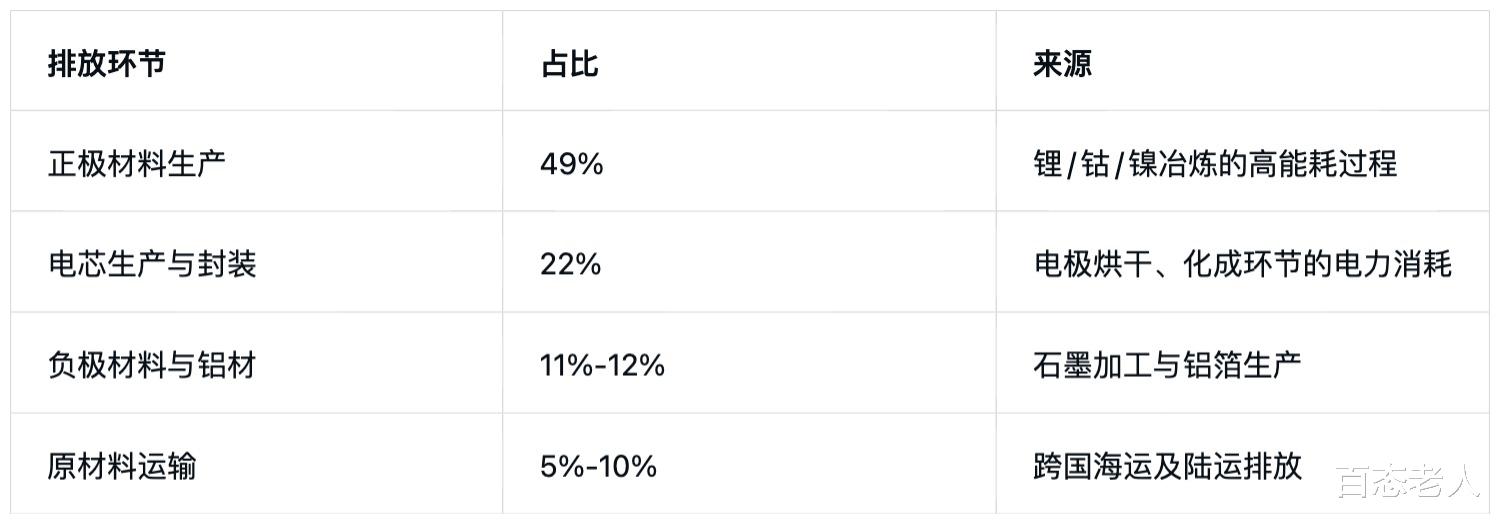 包含原材料提取、生产及运输的排放,例如锂、钴、镍等关键矿物开采加工的碳排放。