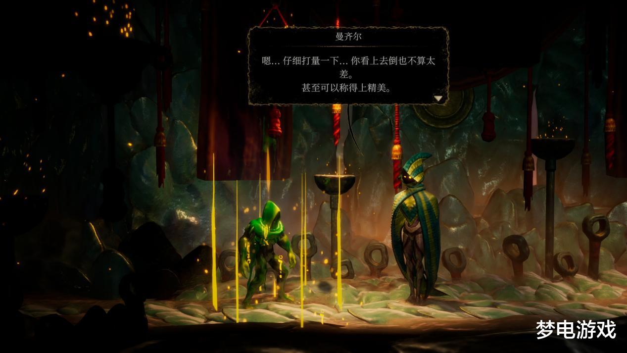 而且在叙事风格的构建上,相较于更加隐晦的前作,本作加入了大量、甚至可以说是“巨量”的NPC对话文本,也就是游戏通过取消前作故弄玄虚的“谜语人”碎片化叙事并加入大量风格独特到更像一个角色、而不是与游戏场景基调统一的普通背景板路人的形式,来为玩家提供大量可选对话以便其在哪怕依旧不理解世界观的前提下,也能理解世界观中各项设定的概念解释。