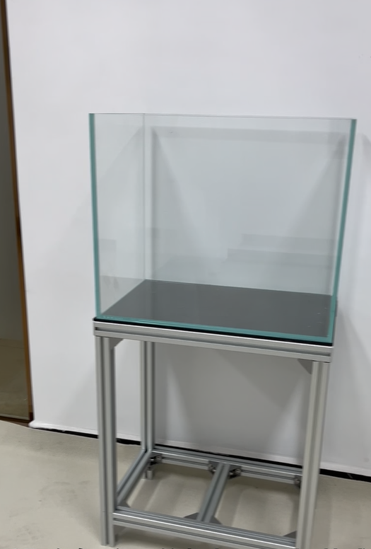 缸体就位与密封:架子上铺整片橡胶垫,再放粘好固化 72 小时以上的鱼缸;接口处补胶防漏;底部地脚微调,保证整个缸面水平