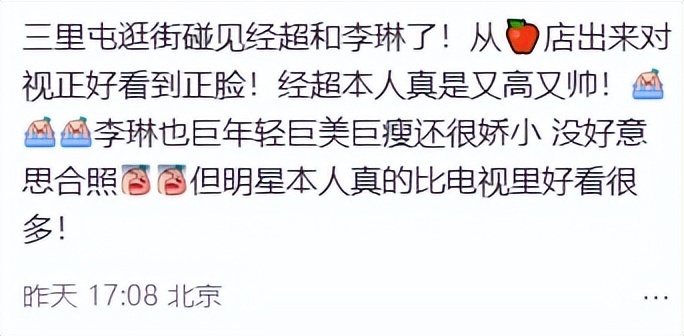 1月8日,有网友在北京三里屯商场,偶遇了经超和小李琳逛街的画面,瞬间引爆了社交媒体。
