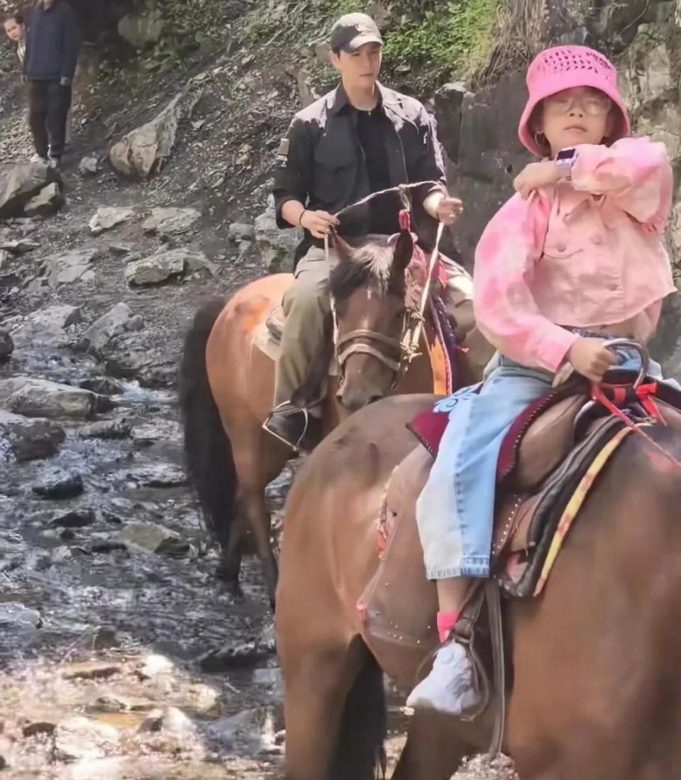 每逢假期,他们一家四口都会一起出去旅行,经超会耐心地为继女牵马,蹲在地上给她拍照,父女俩的互动看起来十分温馨。