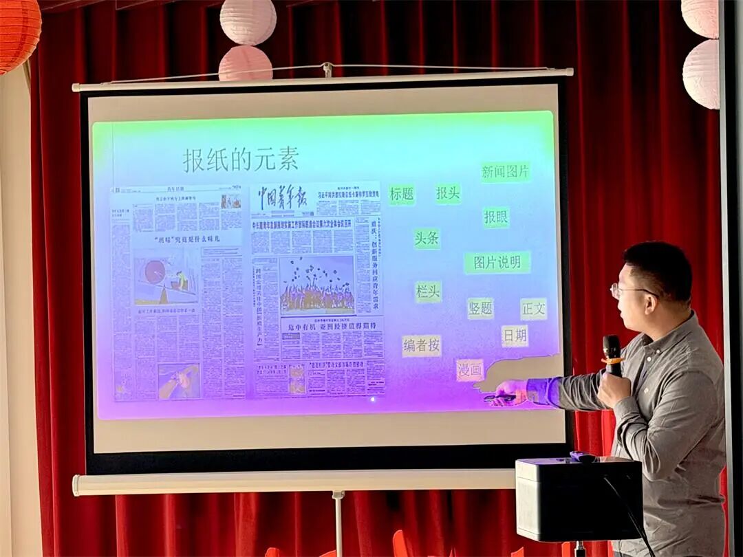 随后,同学们走进北京青年报,正式开启纸与印刷知识的探索之旅。课堂上,专业老师结合生动的案例,系统讲解了纸张制作、印刷发展的历史脉络,重点拆解了报纸生产流程与排版背后的学问,干货满满的内容让大家听得津津有味。从古法造纸中桉树树皮经蒸煮、捣烂、竹帘捞取、太阳晒干的传统工艺,到现代造纸机利用低密度水生成湿纸带、再经挤压烘干成卷的高效流程;从宣纸适用于书画的特质,到课本用纸的现代工艺优势;从印刷术由中国发明、在国外发扬、如今最先进设备产自德国的发展历程,再到报纸报头、报眼、日期、版权条的规范布局,同学们不时举手提问,在问答互动中解锁了许多新知识,对“纸”这一日常物品背后的文化与科技有了全新认知。